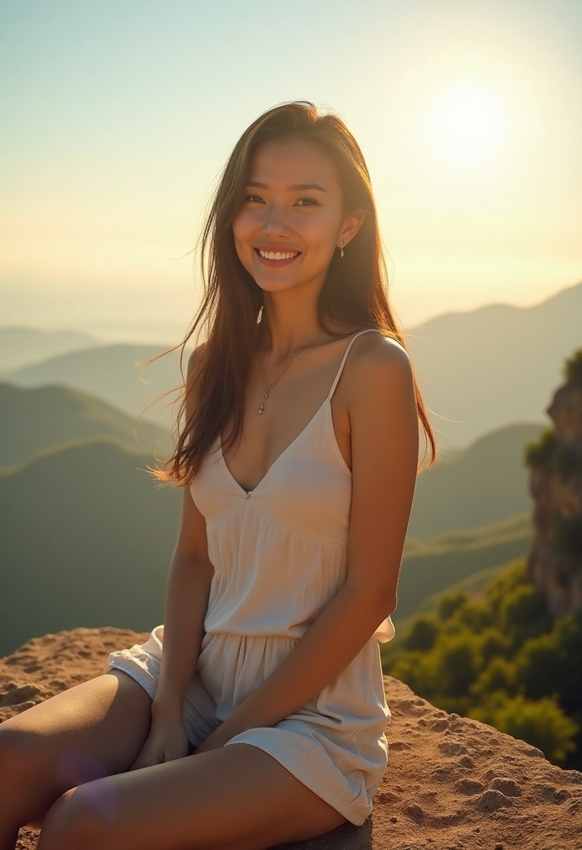 Жаздың шуақты күнінде, кең ашық жартаста отырған адам орта жоспарда көрінеді. Ол камераға сенімді түрде қарап, жымиып отыр. Күннің алтын сәулелері оның бетін нәзік сипалаған. Айналадағы жасыл шыңдар мен кең көкжиек табиғаттың керемет көрінісін ұсынады.